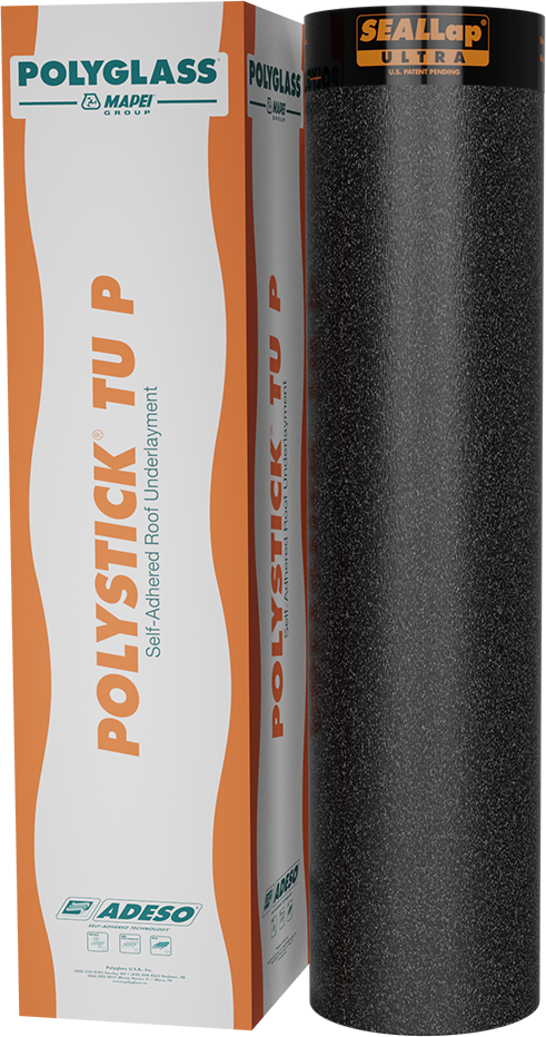 Polystick TU P is self-adhered waterproofing underlayment specifically for use in adhesive foam or mechanically fastened roof tile applications. Utilizing ADESO® dual-compound self-adhered technology, Polystick TU P features a polymer modified bitumen upper compound and a proprietary self-adhesive SBS (elastomeric) compound on the bottom. A split release film that protects the self adhesive compound allows for easy application.