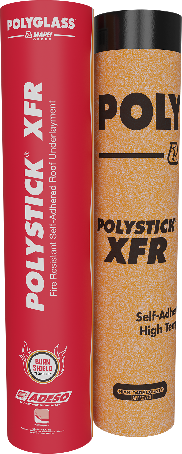 Polystick XFR is a dual purpose fire resistant and self-adhered waterproofing underlayment. Utilizing ADESO® dual-compound self-adhered technology, Polystick XFR features a SBS (elastomeric) modified bitumen upper compound and an aggressive self-adhesive compound on the bottom. Polyglass’ patent pending Burn-Shield Technology™ provides superior fire resistance.